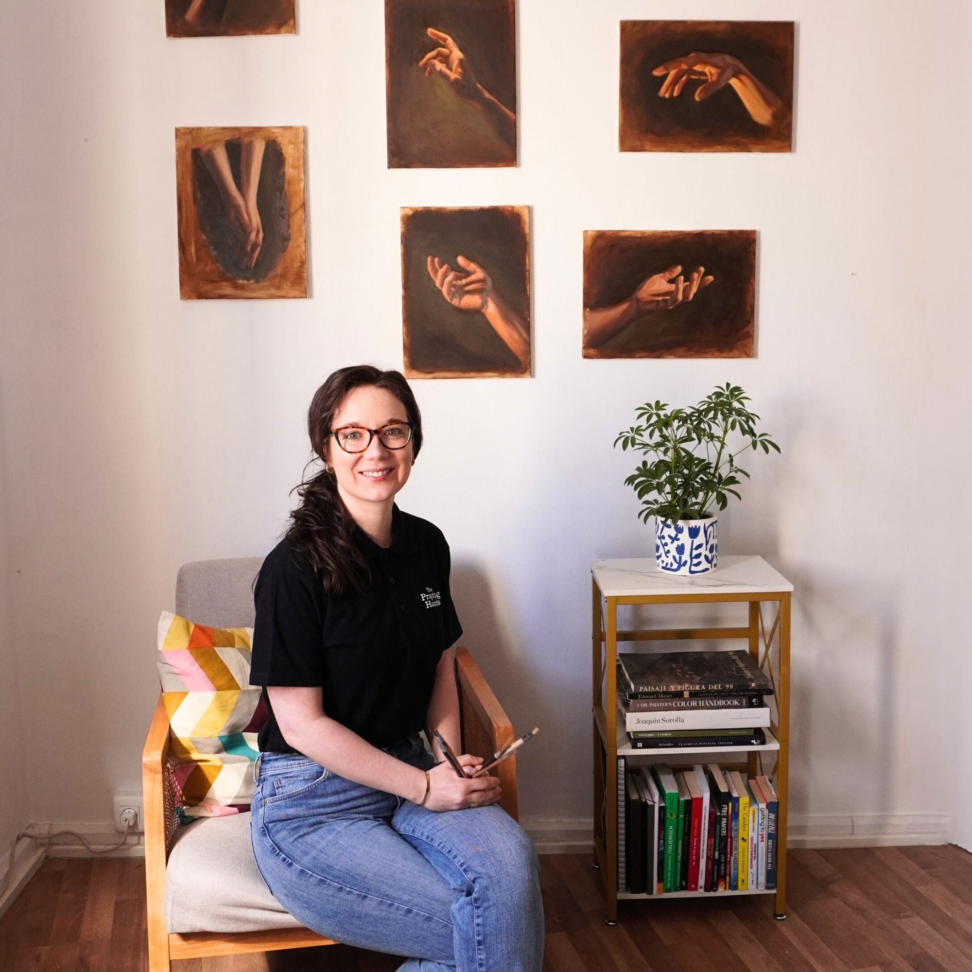 It all started with a simple yet profound moment—light falling on praying hands, capturing something beyond the visible. That moment led me, Sarah Killian, a classically trained oil painter, to a series of oil paintings that turned into more than just art. They became reminders of trust, longing, and the unseen connection between heaven and earth.